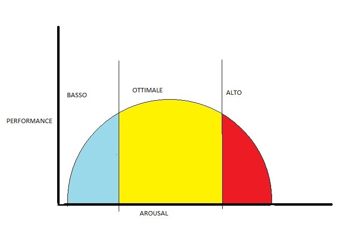 Nella zona gialla della raffigurazione è rappresentata la condizione con il grado ottimale di stress dove la performance sarà ai massimi livelli possibili
